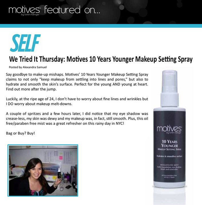 Say goodbye to makeup mishaps. Motives 10 Years Younger Makeup Setting Spray claims to not only “keep makeup from settling into lines and pores,” but also to hydrate and smooth the skin’s surface. Perfect for the young AND young at heart.